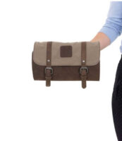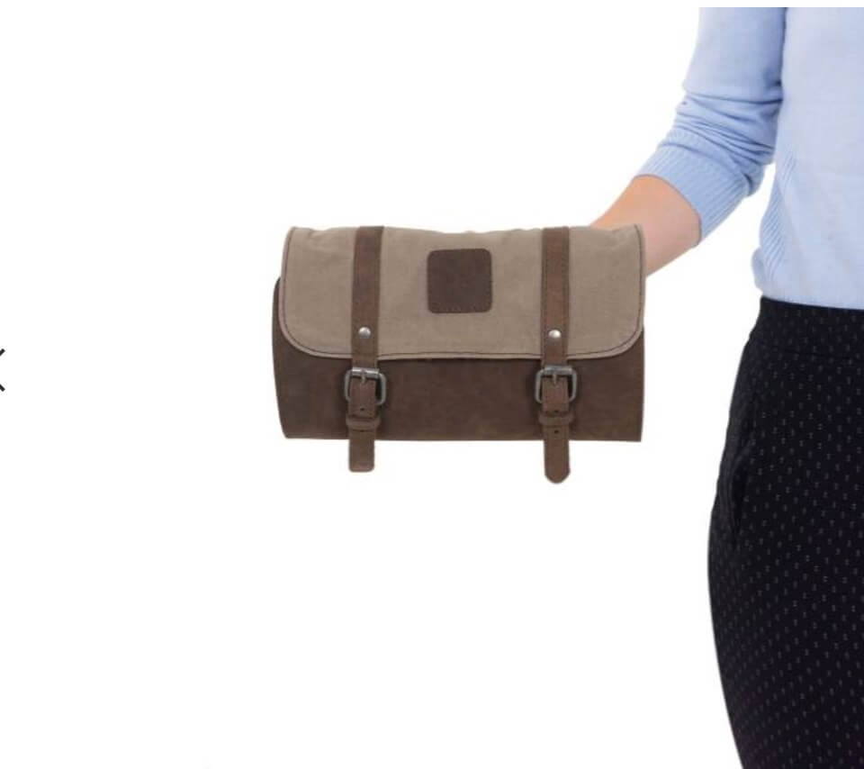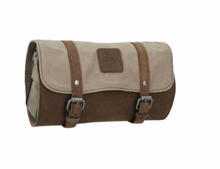 Il y a aussi la trousse de toilette en toile et cuir brun imperméable.